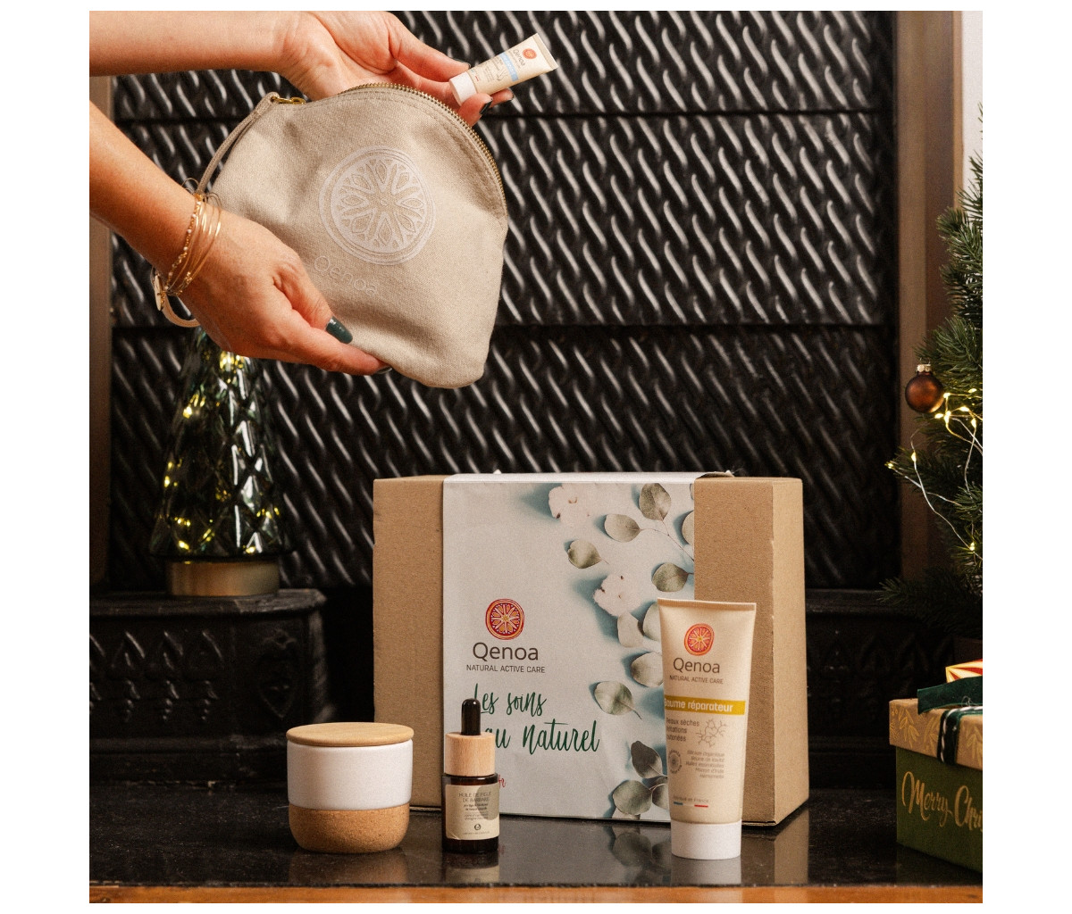 Ce coffret contient : un baume réparateur 75 ml, une huile de figue de barbarie 15 ml, une trousse en coton Qenoa, une bougie parfumée et un tote-bag offerts ainsi que des mini-formats de nos soins best-sellers.
